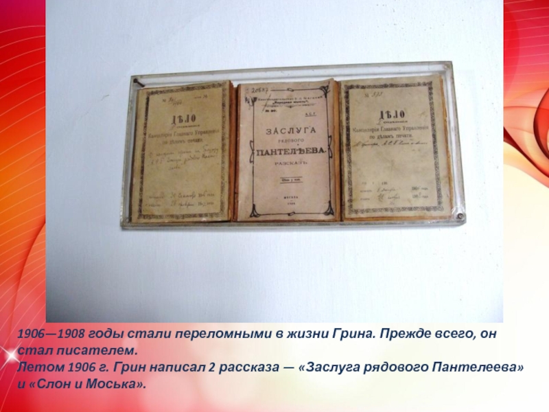 Слайд 111906—1908 годы стали переломными в жизни Грина. Прежде всего, он стал
