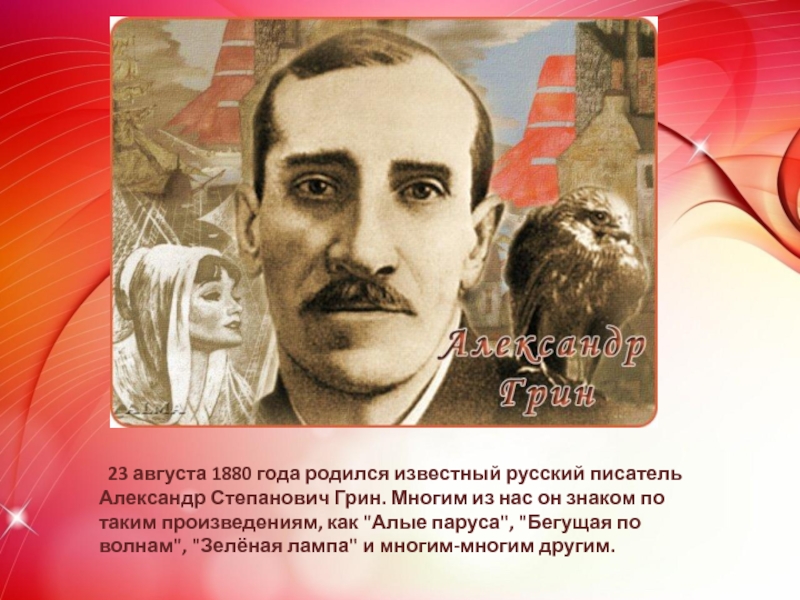 Грин. Многим из нас он знаком по таким произведениям, как "Алые паруса", "Бегущая по волнам", "Зелёная лампа" и многим-многим другим.