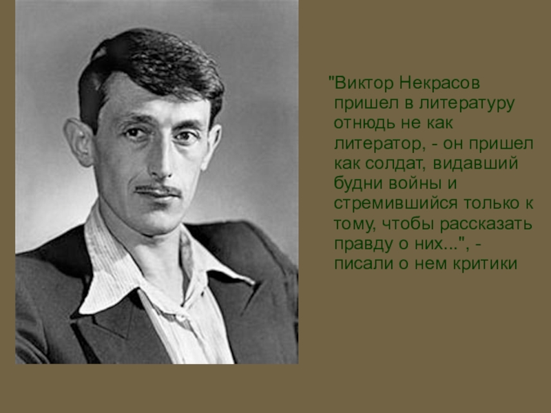 "Виктор Некрасов пришел в литературу отнюдь не как литератор,