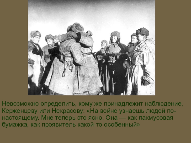 Невозможно определить, кому же принадлежит наблюдение, Керженцеву или Некрасову: «На войне