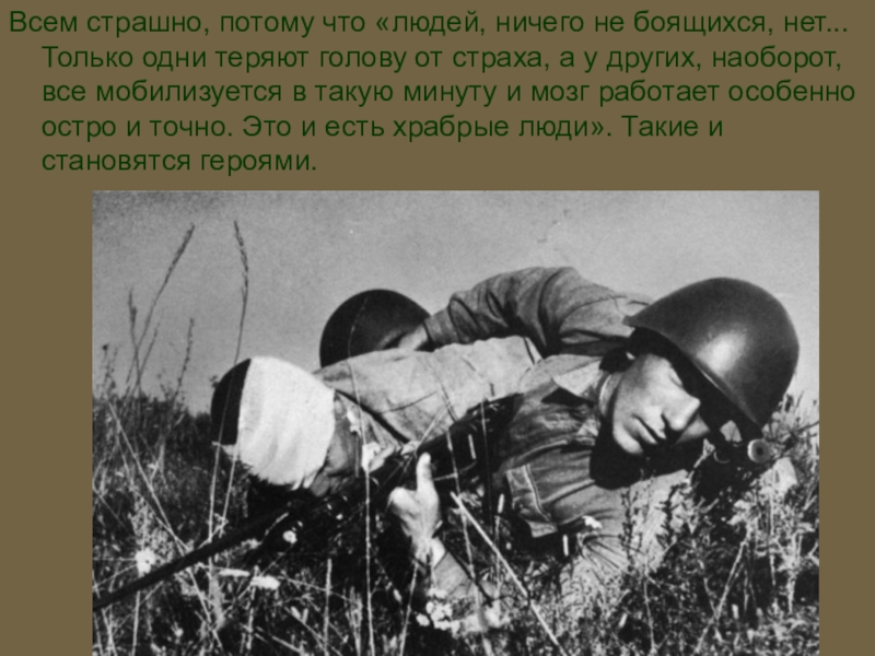 Слайд 15Всем страшно, потому что «людей, ничего не боящихся, нет... Только одни