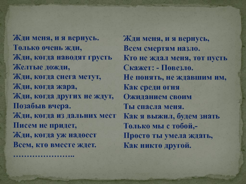 Жди меня, и я вернусь.