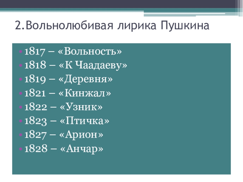 Слайд 42.Вольнолюбивая лирика Пушкина
