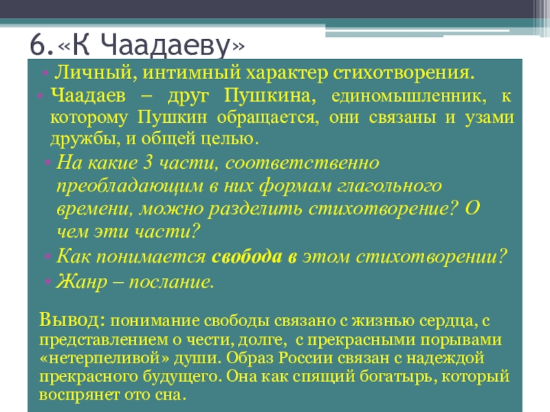 Слайд 106.«К Чаадаеву»