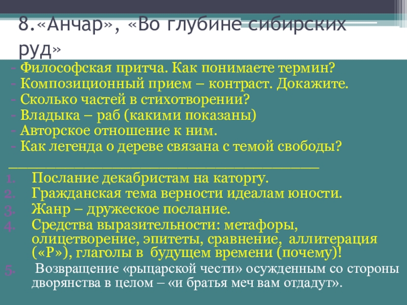 Слайд 128.«Анчар», «Во глубине сибирских руд»