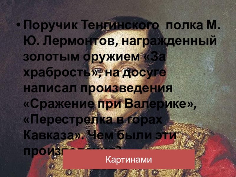 Такими словами напутствовал Николай I поэта, сосланного на Кавказ, 1840г.