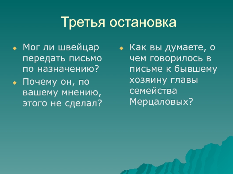 Как вы думаете, о чем говорилось в письме к бывшему хозяину главы семейства Мерцаловых?