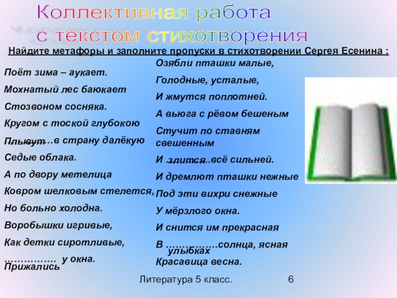 Найдите метафоры и заполните пропуски в стихотворении Сергея Есенина :