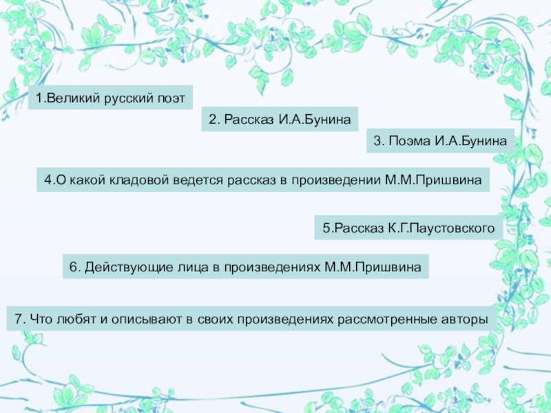 7. Что любят и описывают в своих произведениях рассмотренные авторы