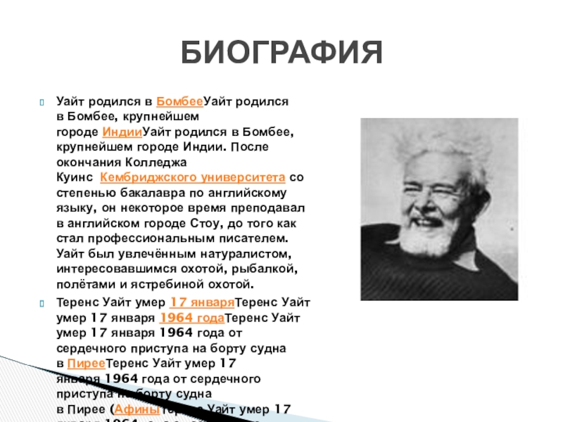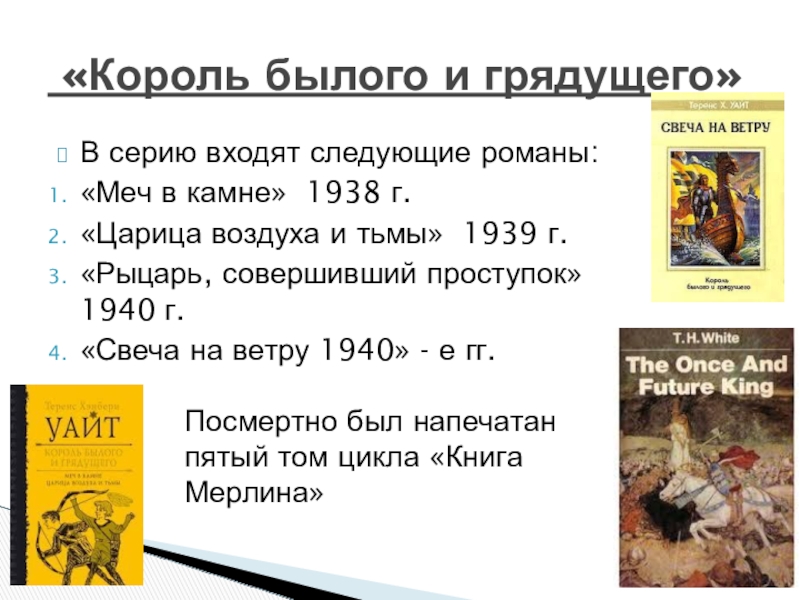 Посмертно был напечатан пятый том цикла «Книга Мерлина»