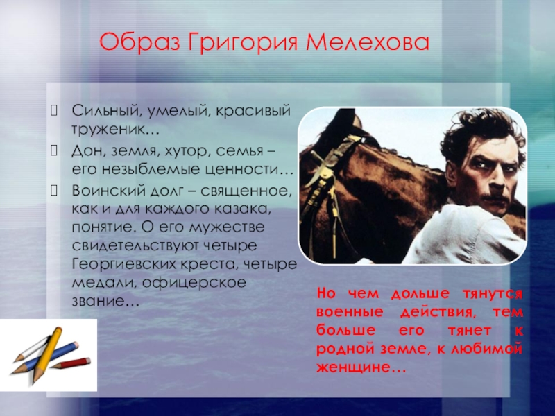 Родная земля, семья, дом – вот те ценности, существованию которых человек обязан всем человеческим в себе. Такова одна из главных идей, выраженных в шолоховской эпопее.