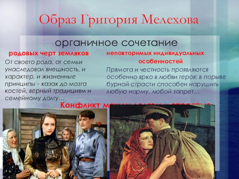 Истоки трагедии Григория кроются не только в его заблуждениях. Тяжкая вина ложится и на историческую эпоху, пробудившую в человеке самые низменные инстинкты, жестокость и фанатизм (эпоха требует от него отказаться от самого себя, от самого ценного и святого, что есть в нём как в сыне «тихого Дона»).
