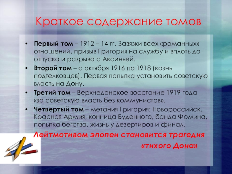Четвертый том – метания Григория: Новороссийск, Красная Армия, конница Буденного, банда Фомина, попытка бегства, жизнь у дезертиров и финал.