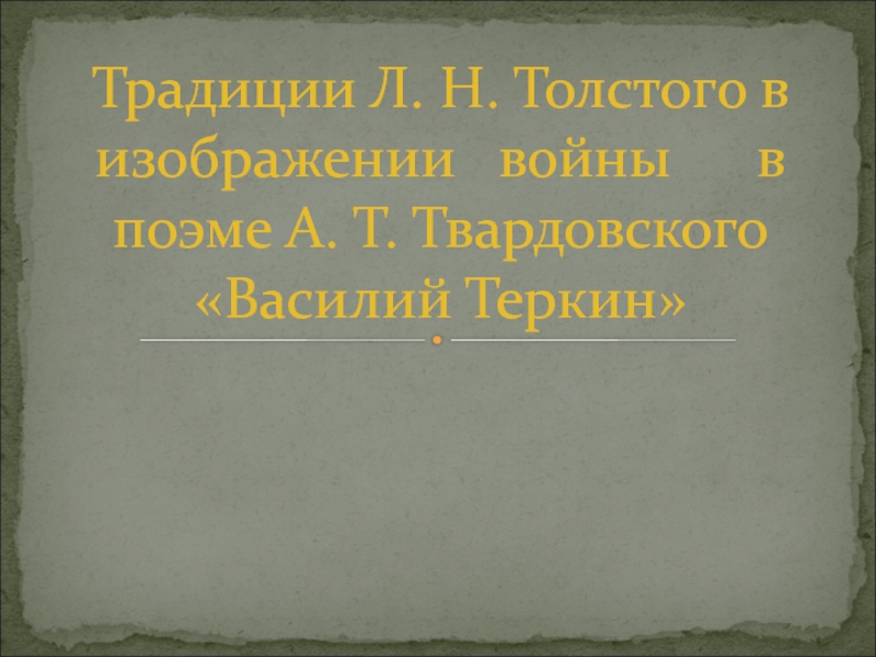 Традиции Л. Н. Толстого в поэме «Василий Теркин»