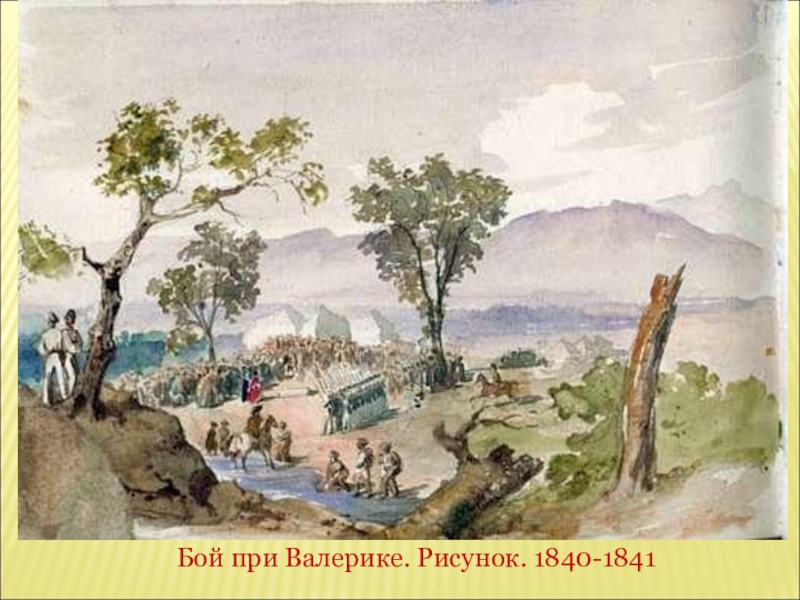 Слайд 23Бой при Валерике. Рисунок. 1840-1841