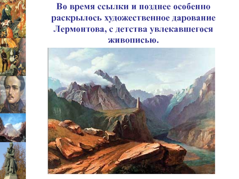Слайд 11Во время ссылки и позднее особенно раскрылось художественное дарование Лермонтова, с