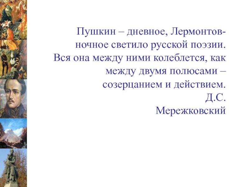 Слайд 18 Пушкин – дневное, Лермонтов-ночное светило русской поэзии.