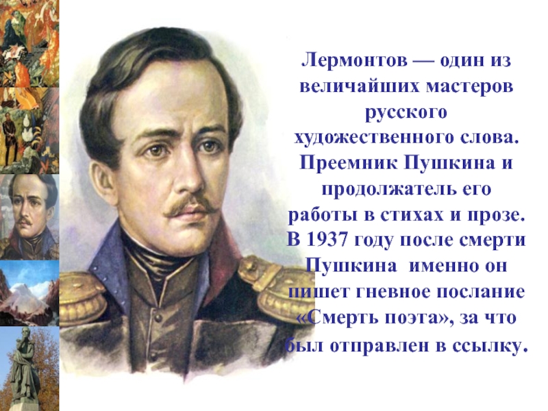Слайд 19Лермонтов — один из величайших мастеров русского художественного слова. Преемник Пушкина