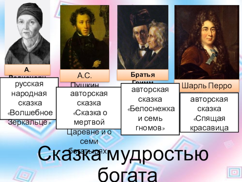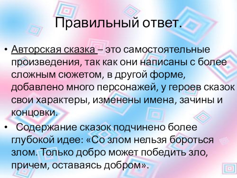 Авторская сказка – это самостоятельные произведения, так как они написаны