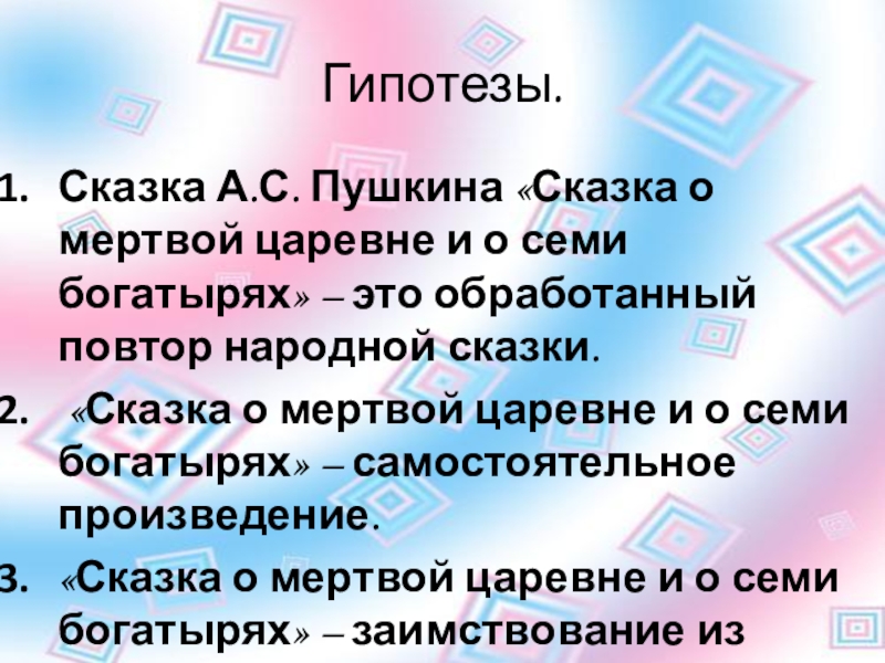Сказка А.С. Пушкина «Сказка о мертвой царевне и о семи богатырях»