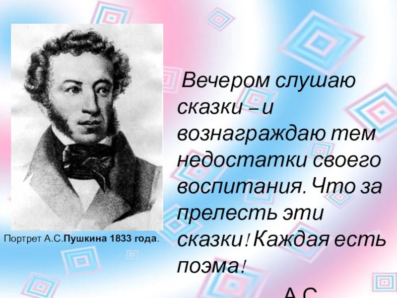 Слайд 2 Вечером слушаю сказки – и вознаграждаю тем недостатки своего
