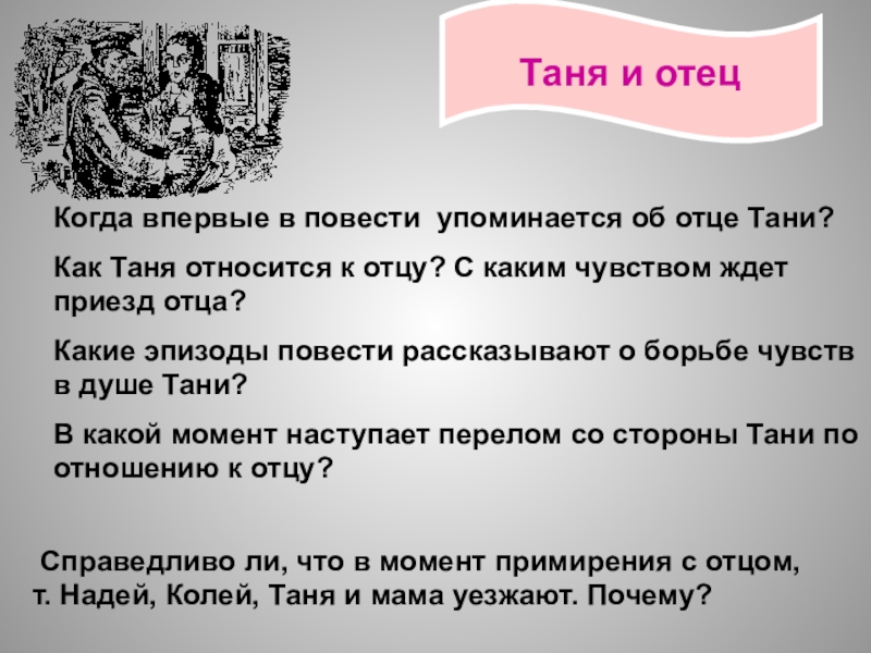 Справедливо ли, что в момент примирения с отцом, т. Надей, Колей, Таня и мама уезжают. Почему?