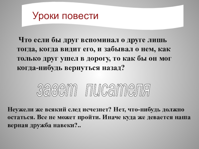 Неужели же всякий след исчезнет? Нет, что-нибудь должно остаться. Все не может пройти. Иначе куда же девается наша верная дружба навеки?..