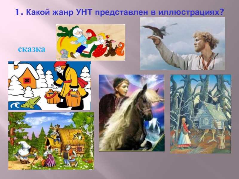 1. Какой жанр УНТ представлен в иллюстрациях?сказка