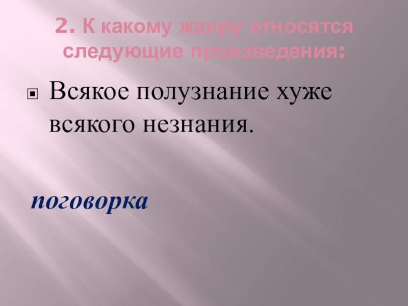 2. К какому жанру относятся следующие произведения:Всякое полузнание хуже всякого незнания.поговорка