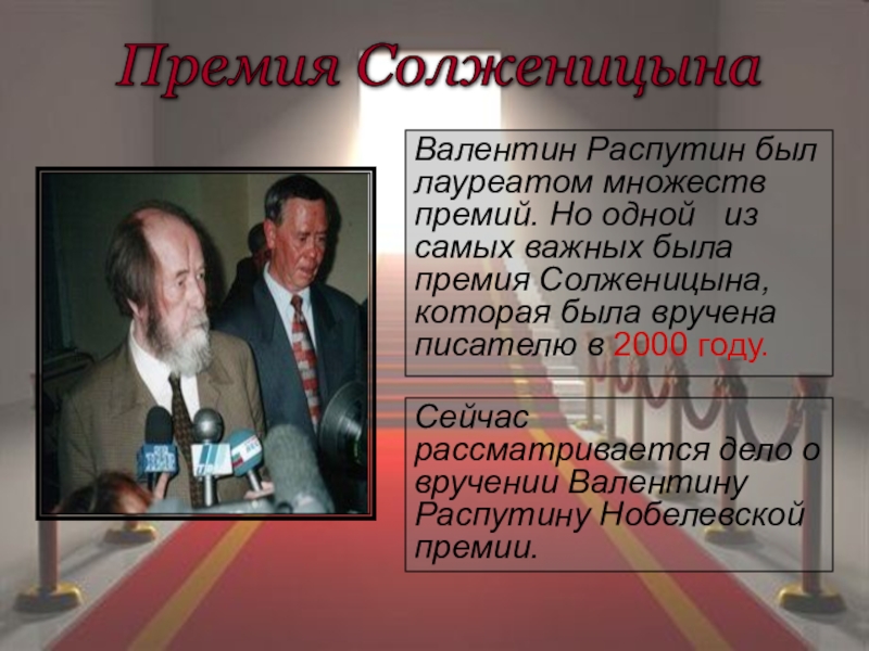 Сейчас рассматривается дело о вручении Валентину Распутину Нобелевской премии.