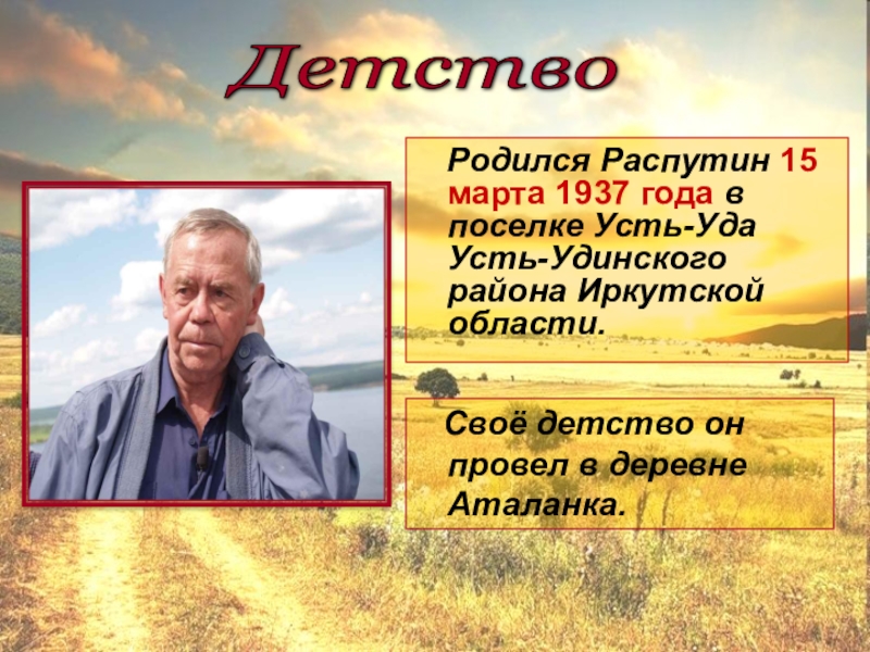 Своё детство он провел в деревне Аталанка.