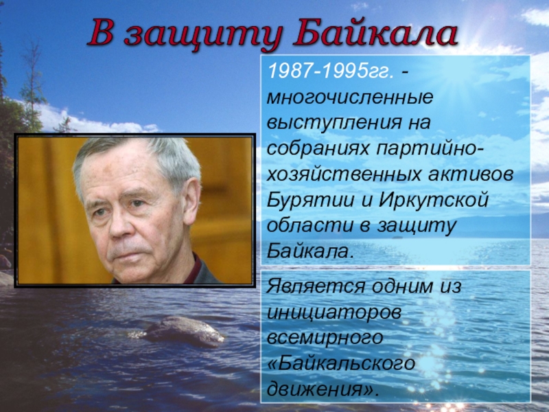 Является одним из инициаторов всемирного «Байкальского движения».