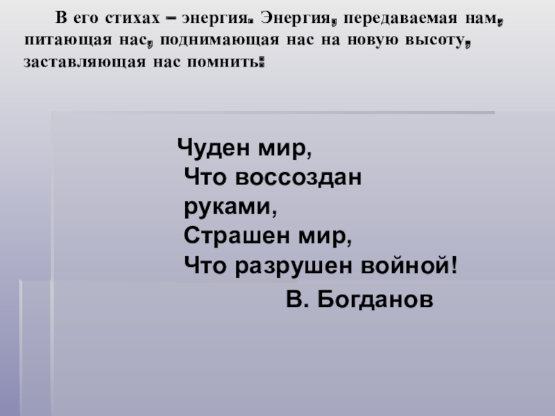 Чуден мир, Что воссоздан руками, Страшен мир, Что разрушен войной!