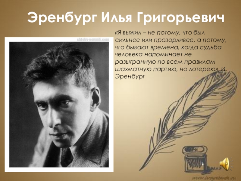 Эренбург Илья Григорьевич «Я выжил – не потому, что был сильнее или прозорливее, а потому, что бывают
