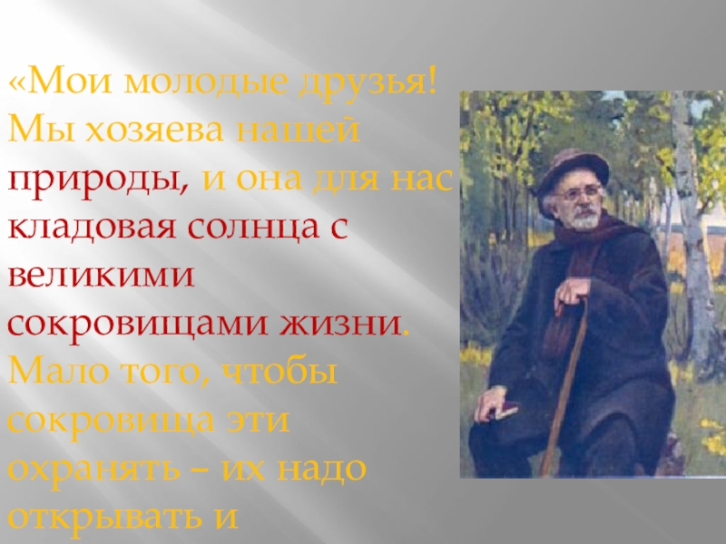 Слайд 13«Мои молодые друзья! Мы хозяева нашей природы, и она для нас