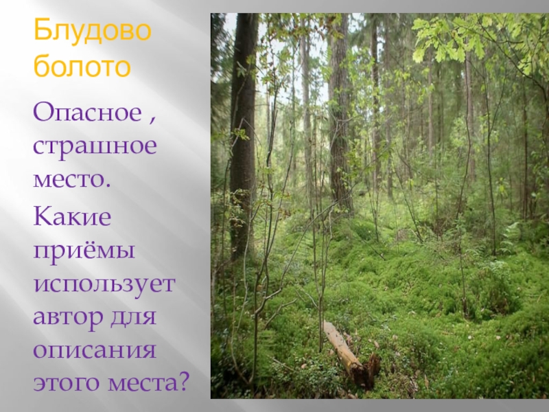 Блудово болотоОпасное , страшное место.Какие приёмы использует  автор для описания этого места?