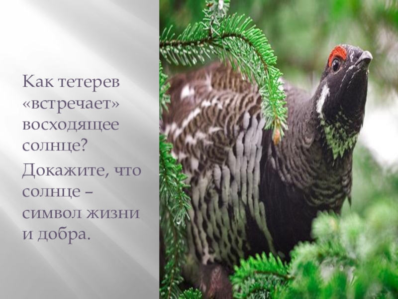 Как тетерев «встречает» восходящее солнце?Докажите, что солнце – символ жизни и добра.
