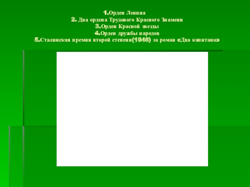Слайд 17Орден Ленина 2. Два ордена Трудового Красного Знамени 3.Орден Красной звезды 4.Орден дружбы народов 5.Сталинская