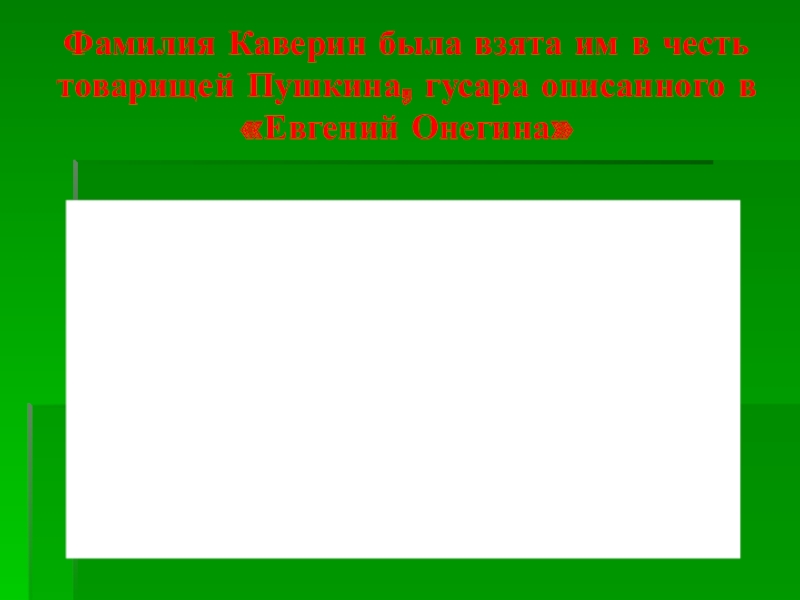 Слайд 16Фамилия Каверин была взята им в честь товарищей Пушкина, гусара описанного