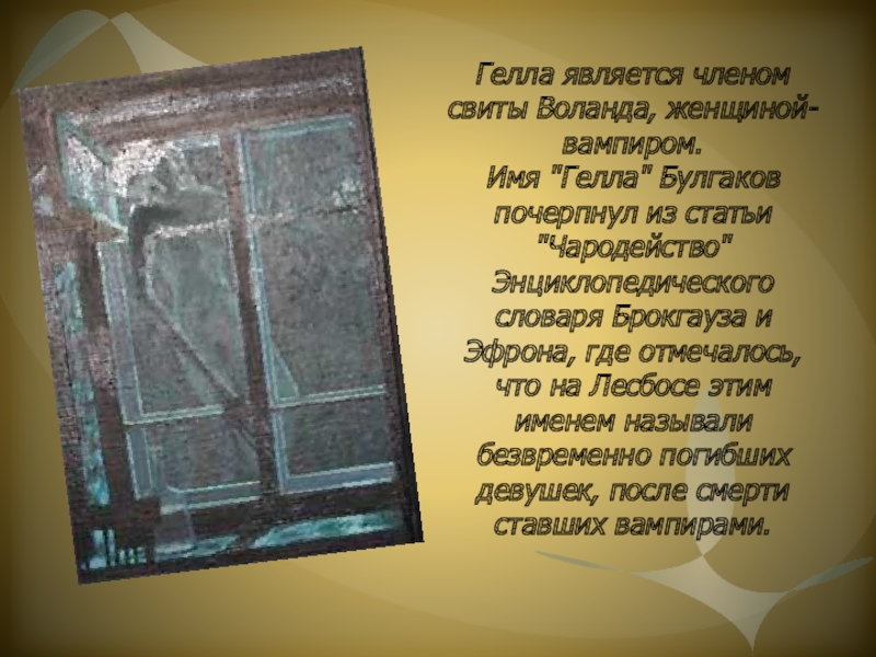 Слайд 16Гелла является членом свиты Воланда, женщиной-вампиром.