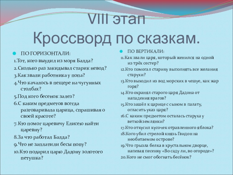 14.Кто охранял старого царя Дадона от нападения врагов?