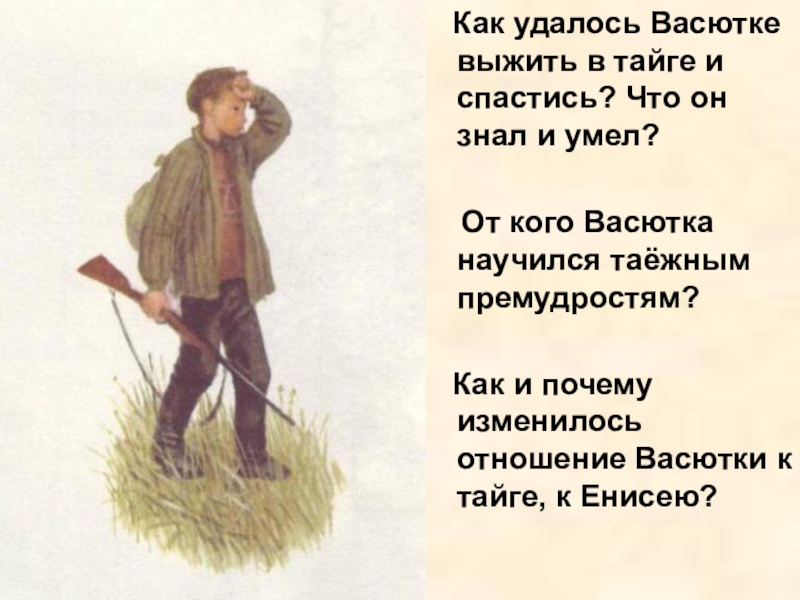 Слайд 24Почему, несмотря на то что пришлось пережить Васютке в тайге, он