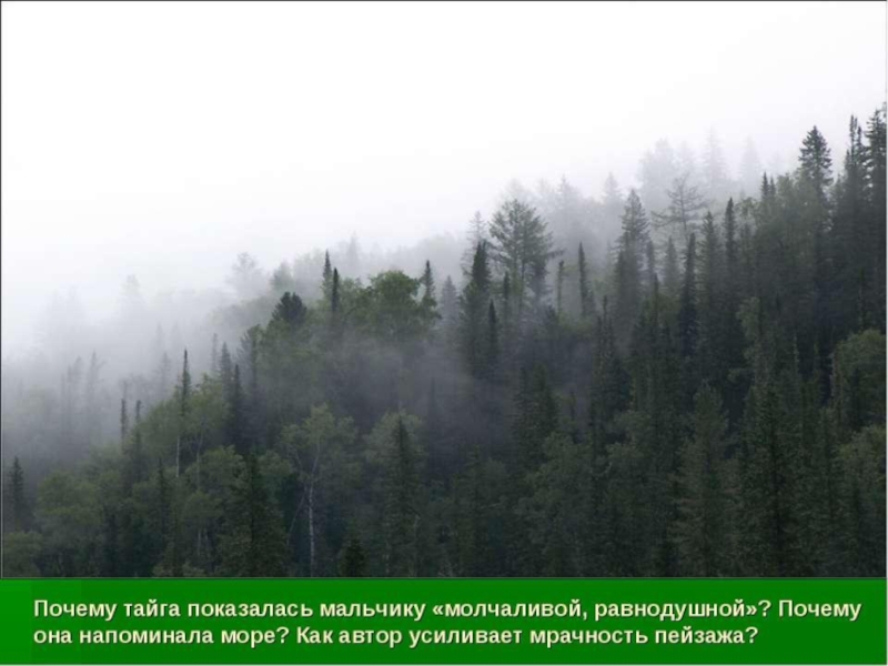 Слайд 13Тайга… Тайга… Без конца и края тянулась она во все стороны,