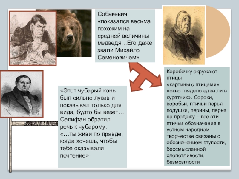 «Этот чубарый конь был сильно лукав и показывал только для вида, будто бы везет… Селифан обратил речь к чубарому: «…ты живи по правде, когда хочешь, чтобы тебе оказывали почтение»