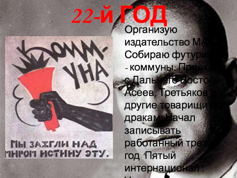 Организую издательство МАФ. Собираю футуристов - коммуны. Приехали с Дальнего