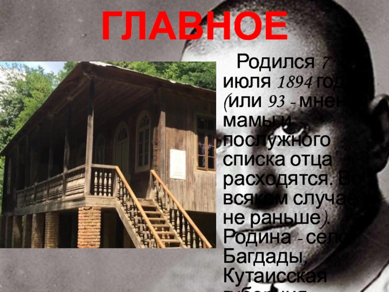 мамы и послужного списка отца расходятся. Во всяком случае не раньше). Родина - село Багдады, Кутаисская губерния, Грузия.