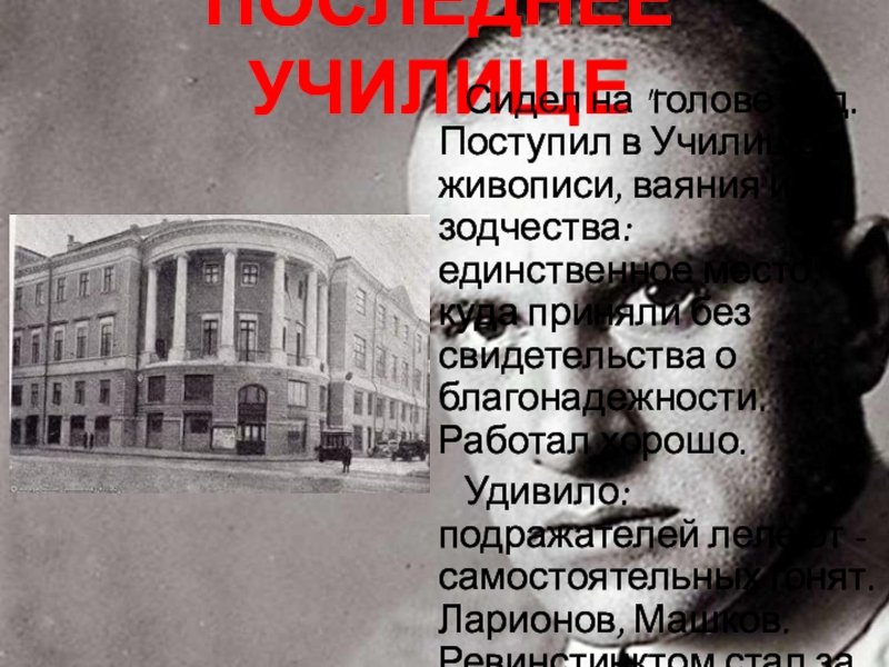 Слайд 19ПОСЛЕДНЕЕ УЧИЛИЩЕ