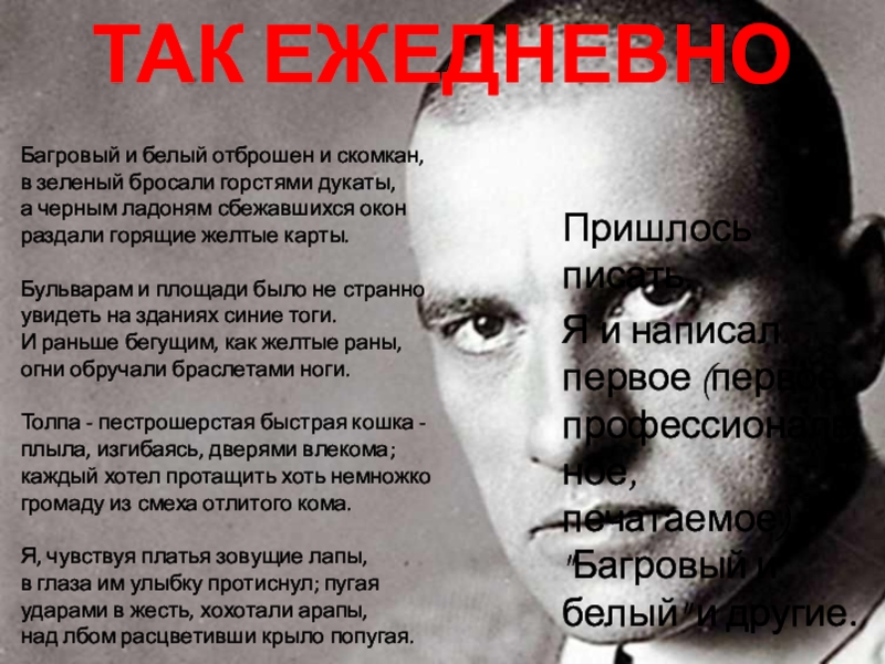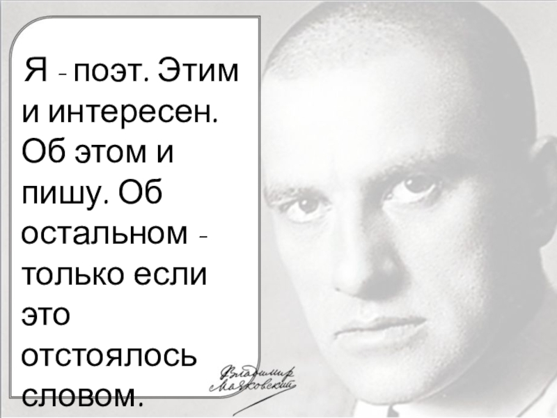 Слайд 3 Я - поэт. Этим и интересен. Об этом и пишу.