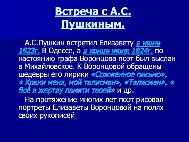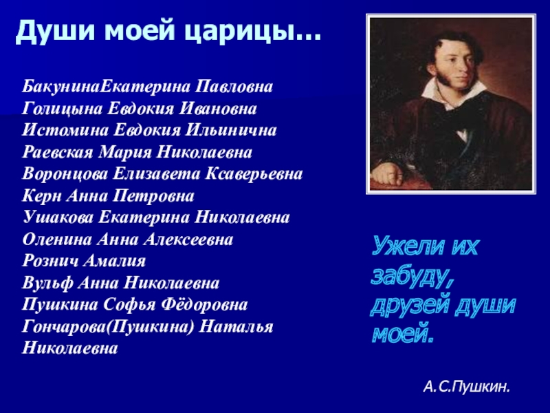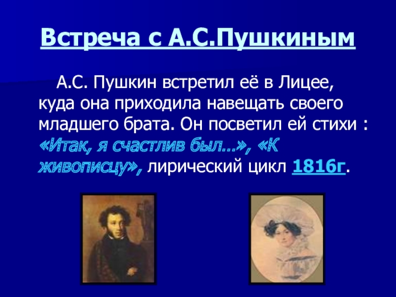 Ей же поэт посвятил одно из самых совершенных созданий своей лирики – «Для берегов отчизны дальней…».