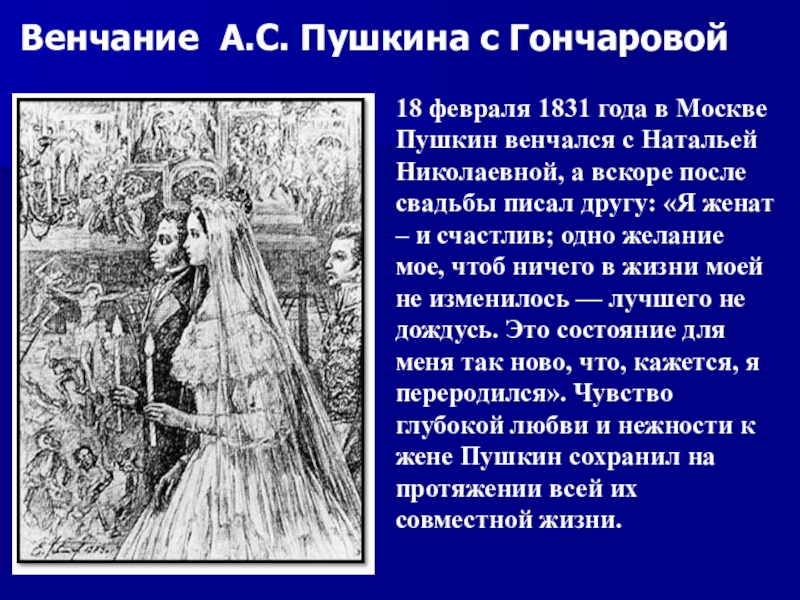Венчание А.С. Пушкина с Гончаровой